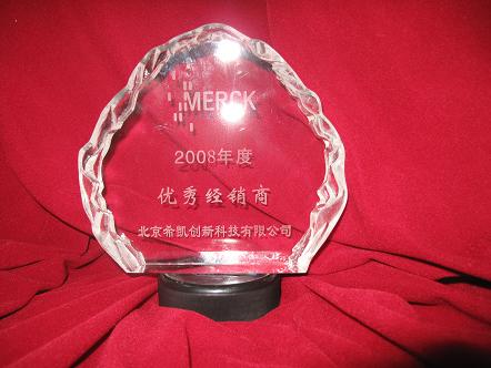 2008年度,北京希凱創(chuàng)新科技有限公司Merck產(chǎn)品銷售額和客戶滿意度均名列前茅,因而被授予優(yōu)秀經(jīng)銷商獎(jiǎng)杯